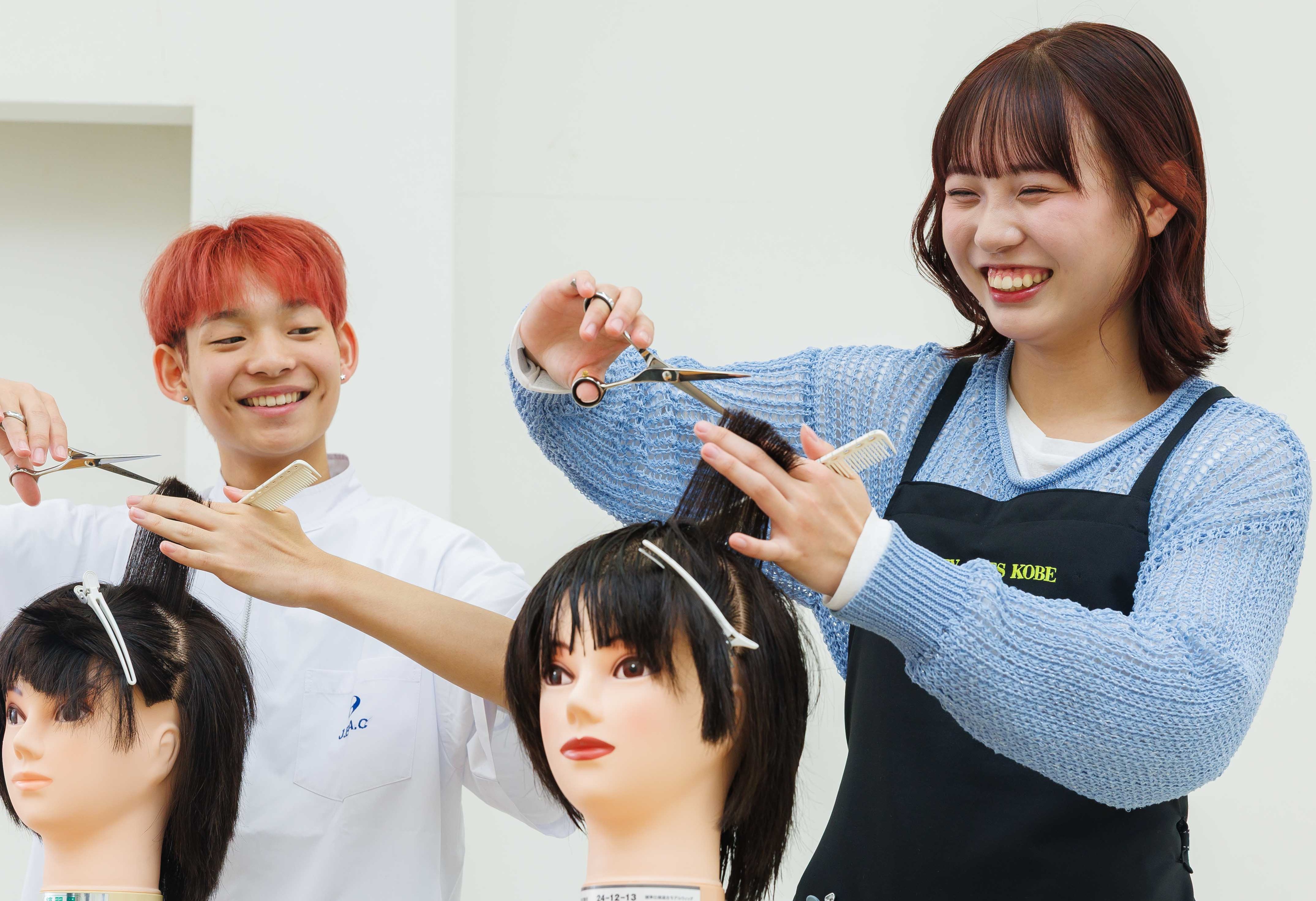 練習に励むのは大変ですが、美容学生ならではの特別な経験となり、本当に楽しいです。ぜひこの学校で一緒に立派な美容師をめざしましょう!
