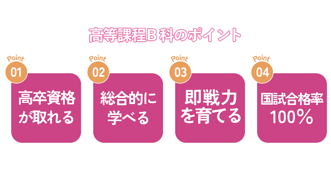 中学校を卒業された方を対象としたコースが「高等課程B科」です。