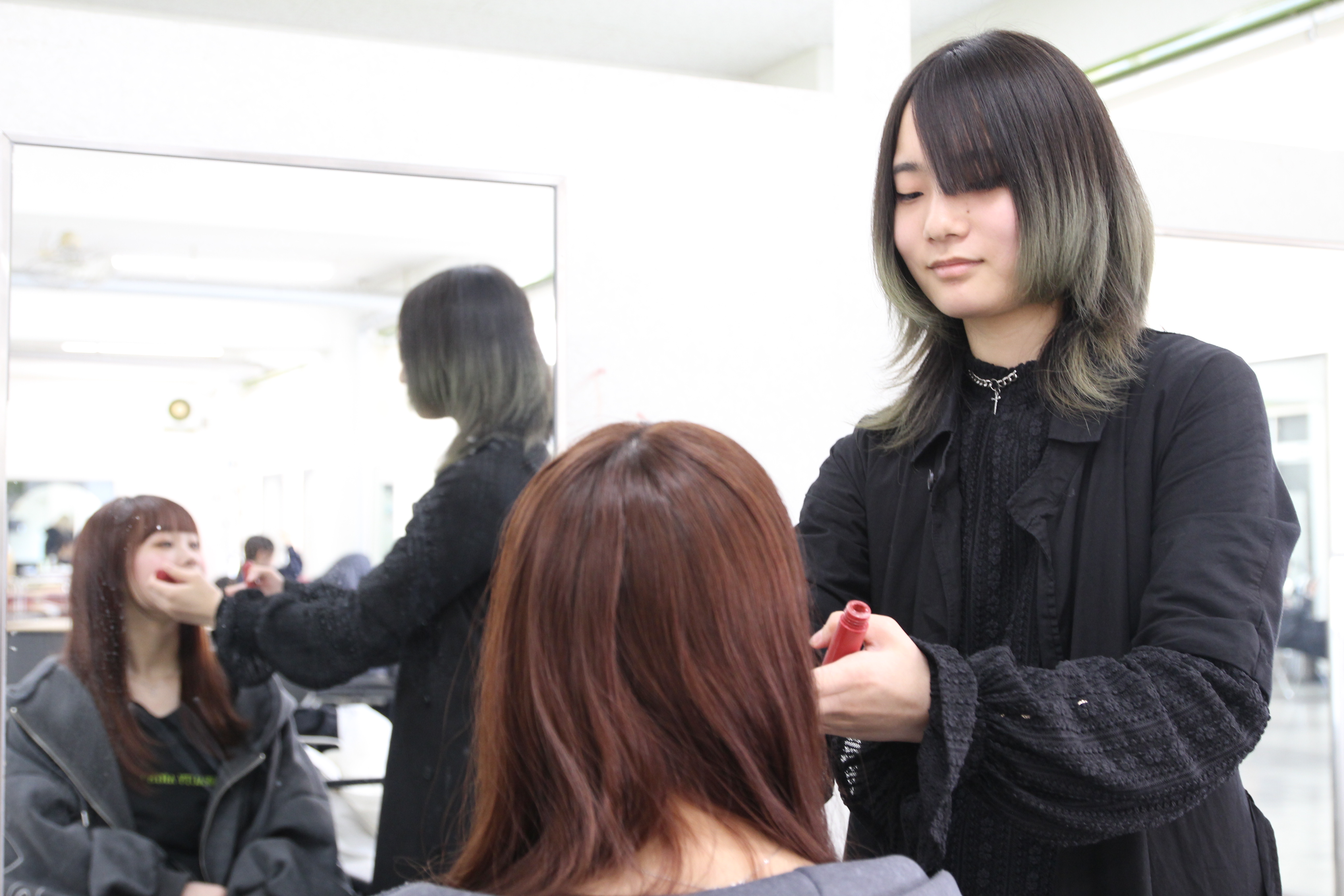 18歳で美容師になれる高等課程に惹かれて、この学校を選びました。大会やヘアショーに向けて仲間と切磋琢磨しながら作品作りや
